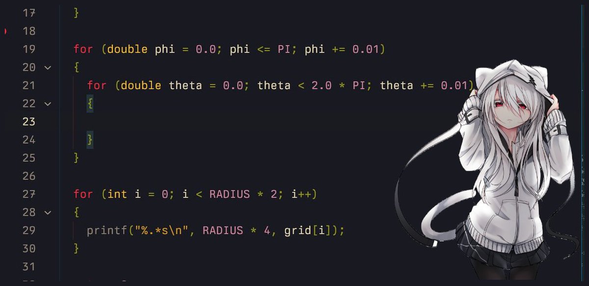 also as now we have both theta and phi, we use 2 for loops :^)