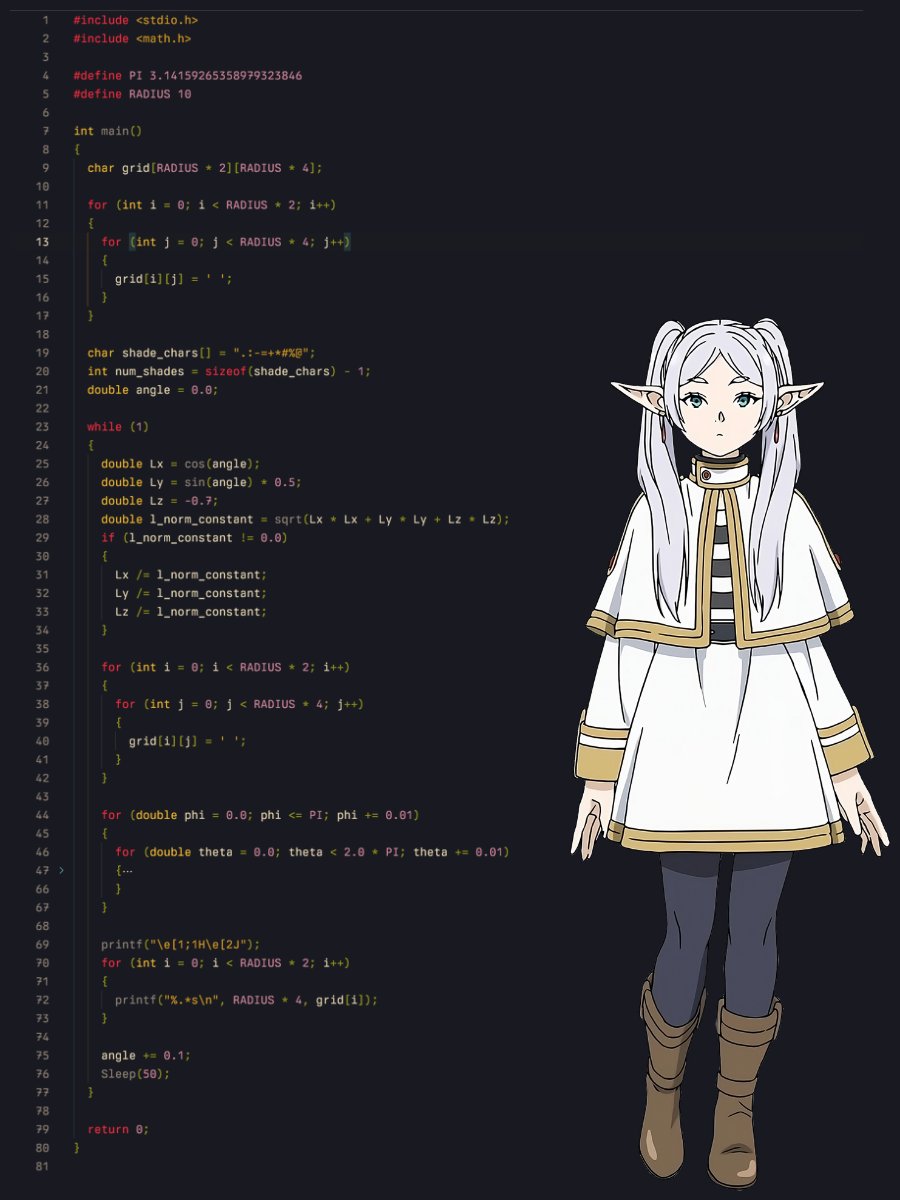 chapter 3: how to add animations to the ascii sphere explain like im 5 🧵 (ft. frieren)